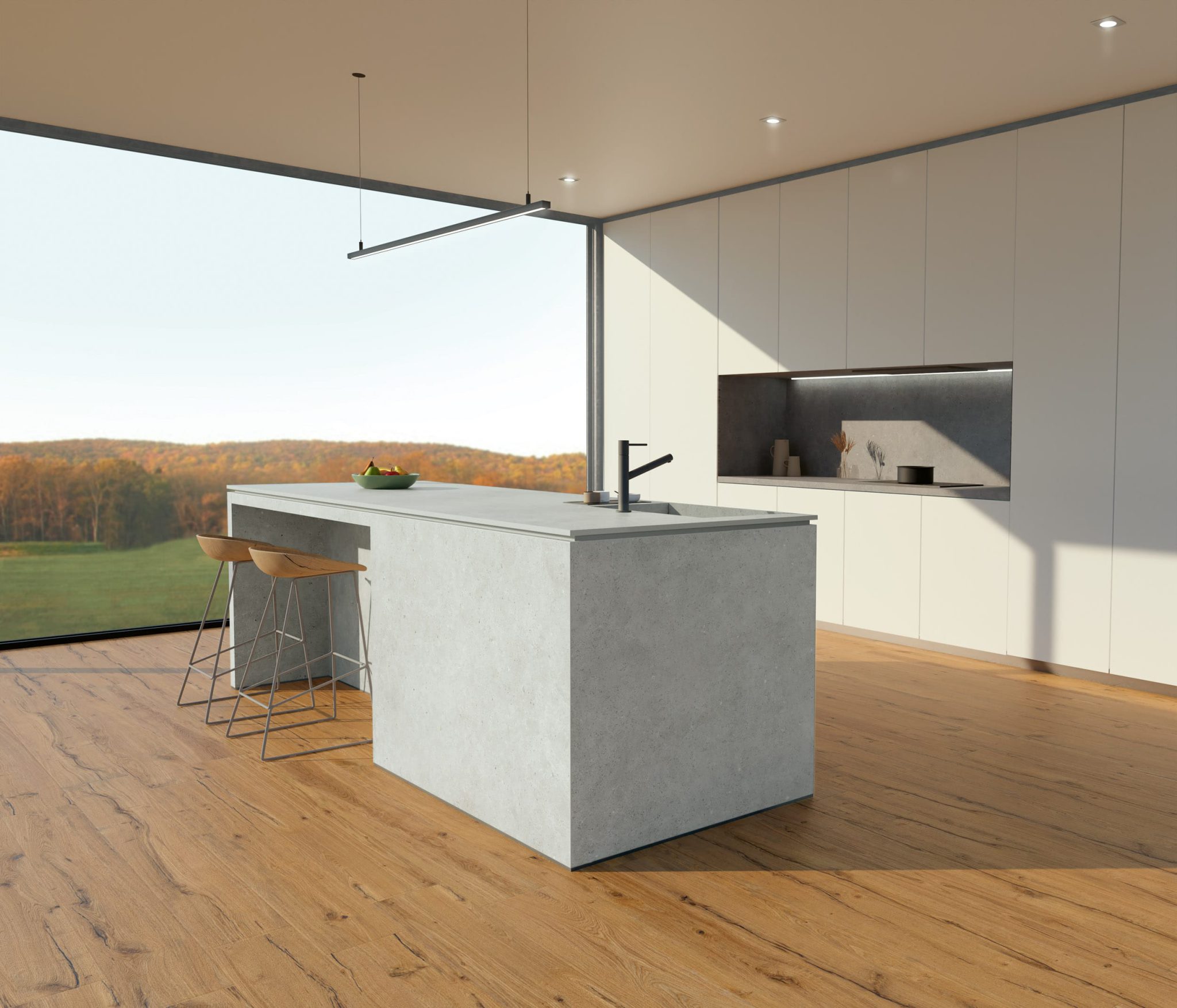 Blat de bucătărie din ceramică Brera Street, brand Ekxtra made in Italy – efect de beton elegant și stil urban contemporan