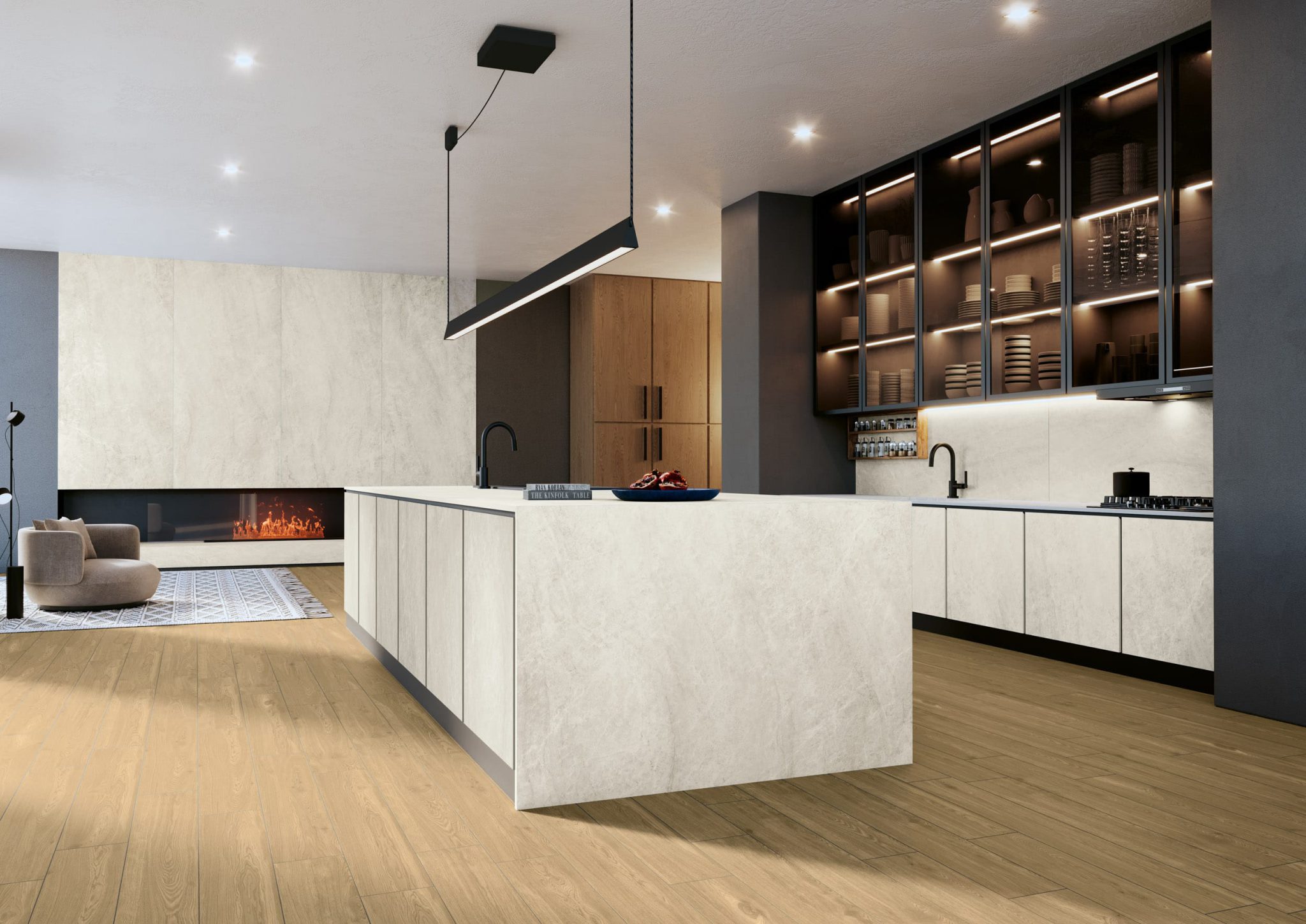 Blat de bucătărie din ceramică Taj Mahal Shell, brand Ekxtra made in Italy – luminozitate delicată și eleganță discretă
