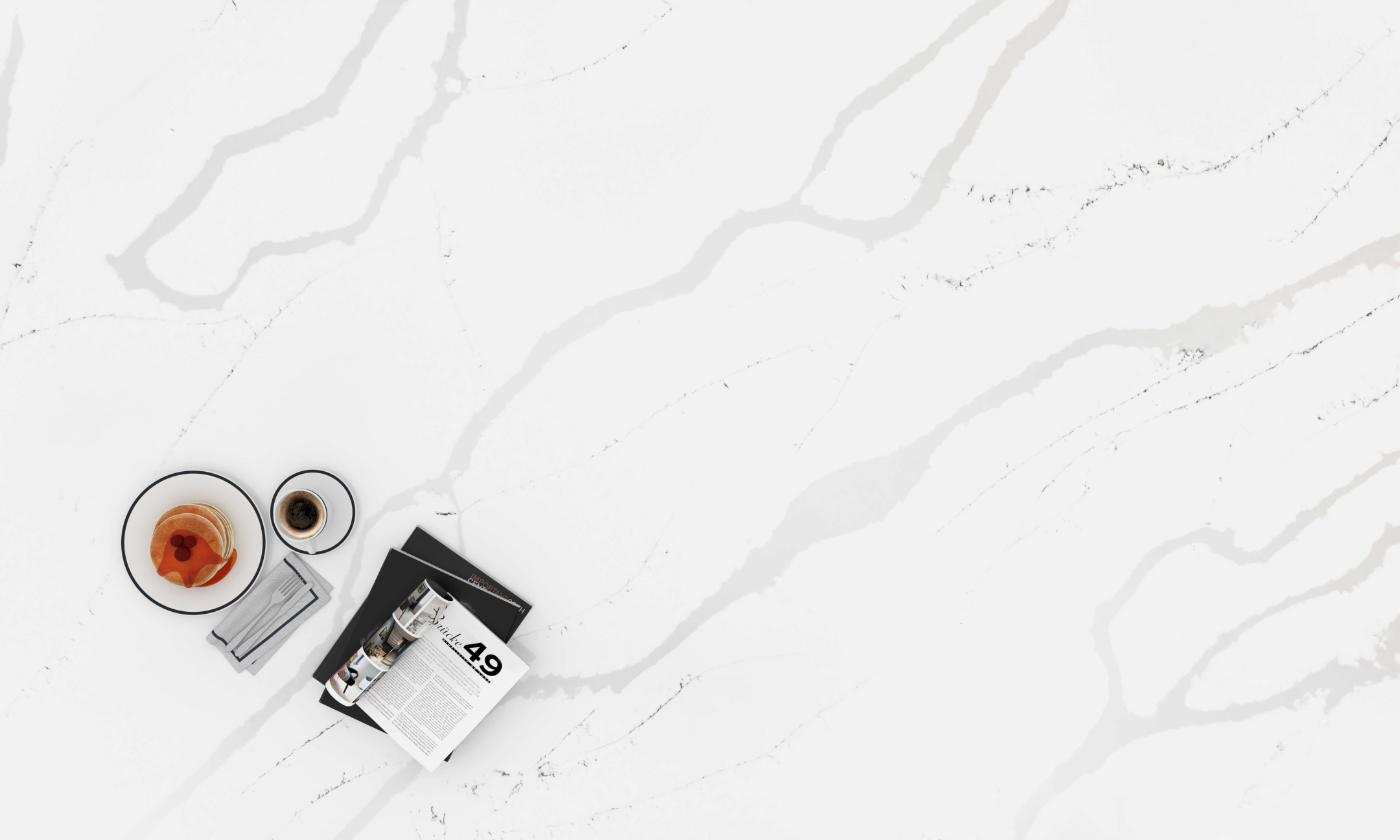Textura sa rafinată creează un efect natural și sofisticat, inspirat de marmura alba Calacatta, completat de performanța superioară a quartzului compozit premium.