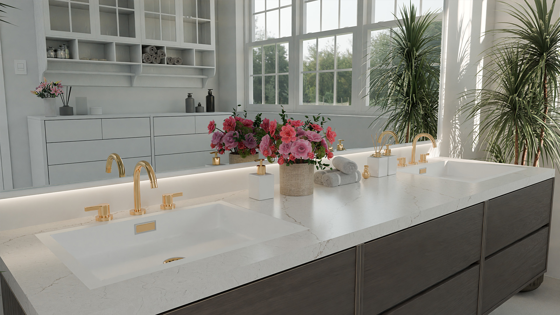 Blatul din quartz MILOS 295 este ideal pentru bucătării elegante, insule de bucătărie rafinate, băi luminoase sau spații comerciale unde se dorește un material rezistent și cu estetică naturală.