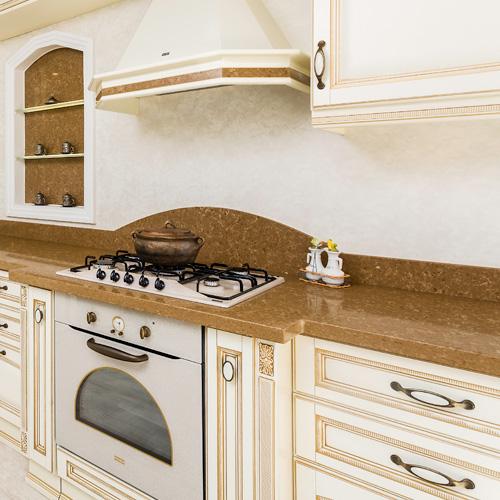 Blatul 912 TROAS de la Cimstone este un produs premium, cu un design elegant și durabil, perfect pentru orice bucătărie modernă sau clasică. Acesta este realizat din quartz compozit cu fund maroniu-beige și venatură alb-galben deschis, imită cu succes marmura, dar beneficiază de toate avantajele materialelor compozite.