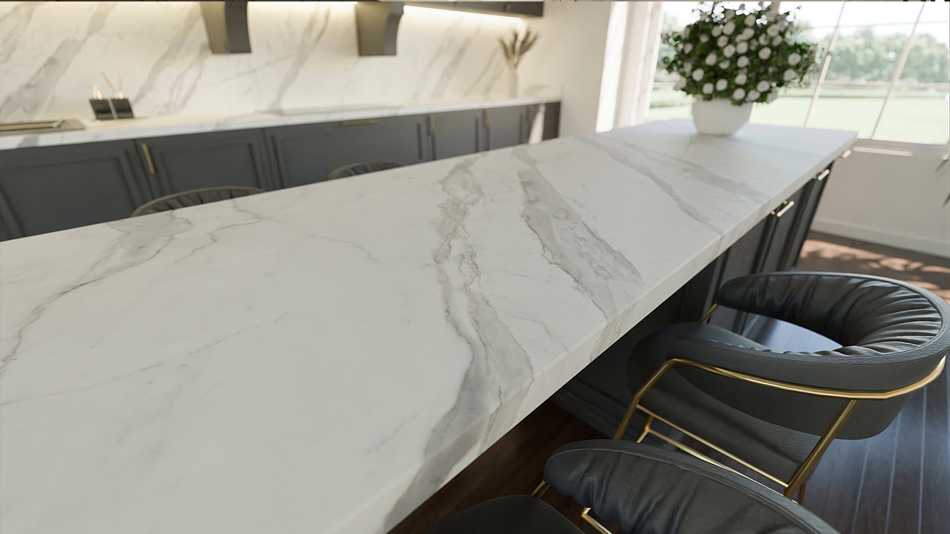 Blat BUCATARIE fabricat din Quartz CALACATTA TIKAL, brand Cimstone