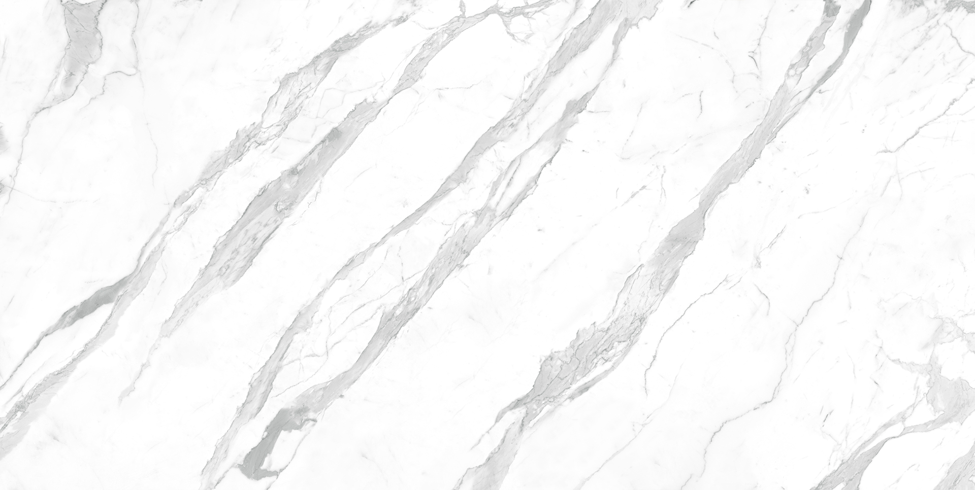 Blat din quartz compozit cu design digital Calacatta Tikal, definit printr-o suprafata cu un fundal alb curat străbătut de vene gri deschis, alungite și fluide,