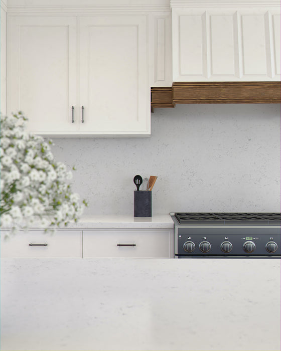 Blaturi din quartz compozit – alb-sidefat cu venaturi gri