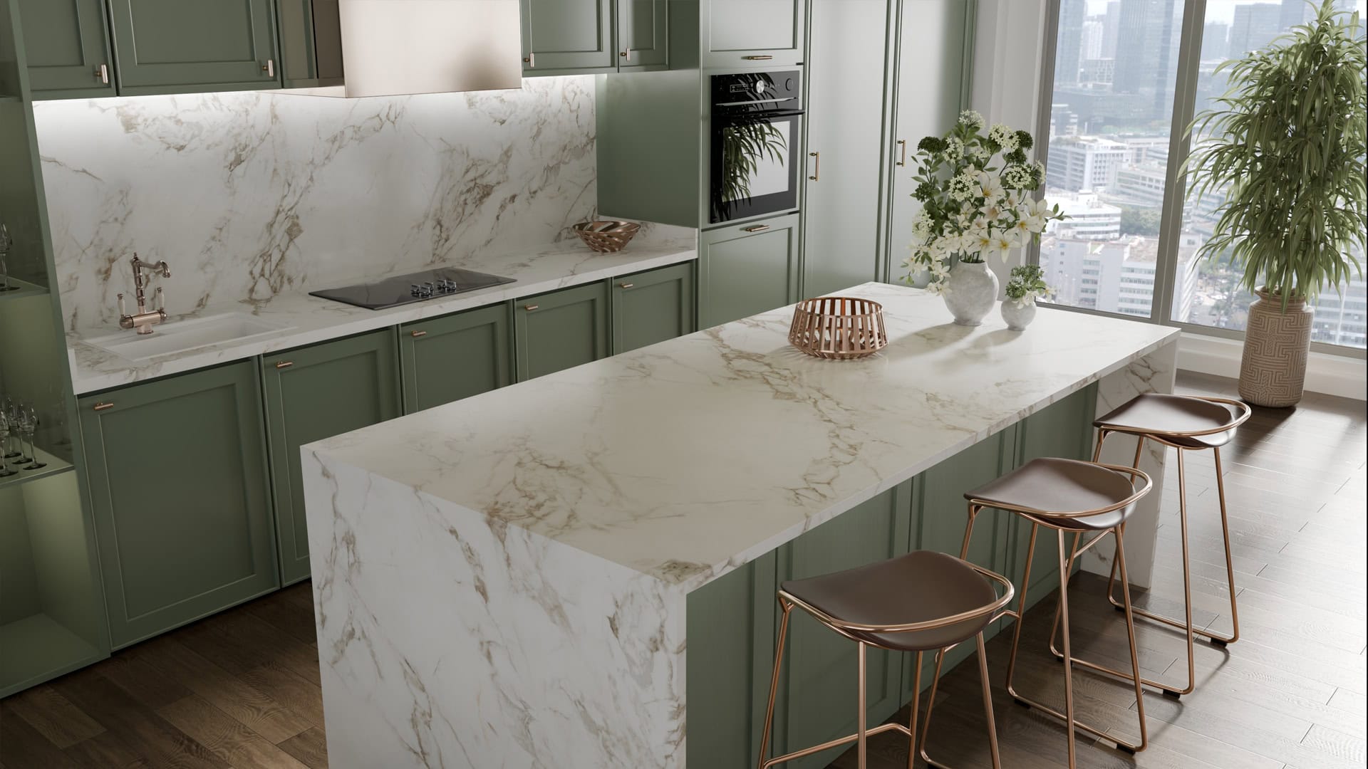 insule de bucătărie elegante, băi rafinate, recepții sau spații comerciale